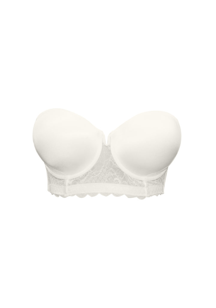 Bra: Seamless Cup Trimmed With Lace Contour Strapless Longline Bra. Lace Lined With Sheer Power Mesh For Extra Support.
