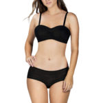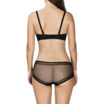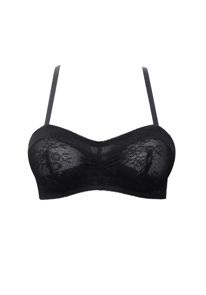 Bra: Mesh Lined Cup For Sheerness With Support, Side Boning For Support And Smoothing With Bandeau Shape For A Younger Feel And Delicate Vintage Feel Trim Around Neckline With Swiss Dot Mesh And Lace Detailing.
