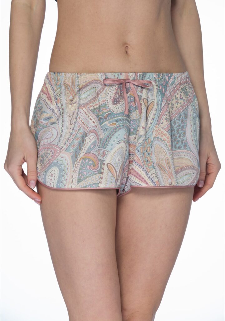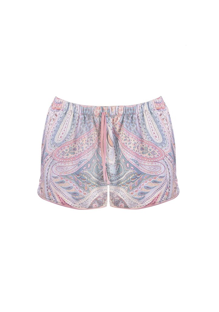 Our much-loved shorts are here, in paisley print. They feel soft to touch and the relaxed wide legs make them airy and cool. Featuring with mock drawstring waist and contrast-color hem profile.