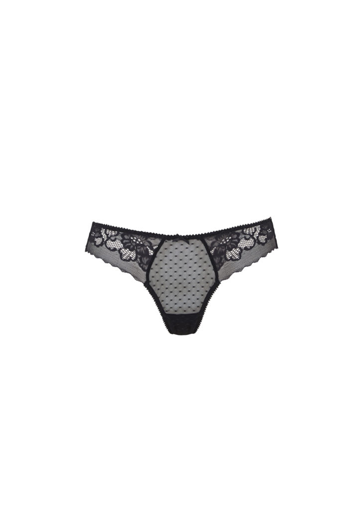 Panty: Modified Bikini With Dotted Mesh And Lace Galoon On Side Fronts And Back Leg. Narrow Waist And Leg Elastic. 100% Cotton Crotch Lining.